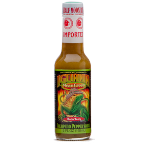Here at the Bay, we think hot sauce should never be gratuitously hot, forsaking flavor. (We've all been there.) That's why we created Iguana Mean Green Jalapeño Pepper Sauce, which features a very delicate balance between the moderate heat of the jalapeño pepper and its unique, fresh, "grassy" flavor. Hot n' tasty is where it's at: the first wave of flavor here is the fabulous onion, garlic and jalapeño blend, followed a few seconds into the wave with a perfect dose of jalapeño heat. Iguana Mean Green rules in all seafood, chicken and pork dishes, not to mention eggs, beans and rice, soups, chili and in marinades for the grill.
