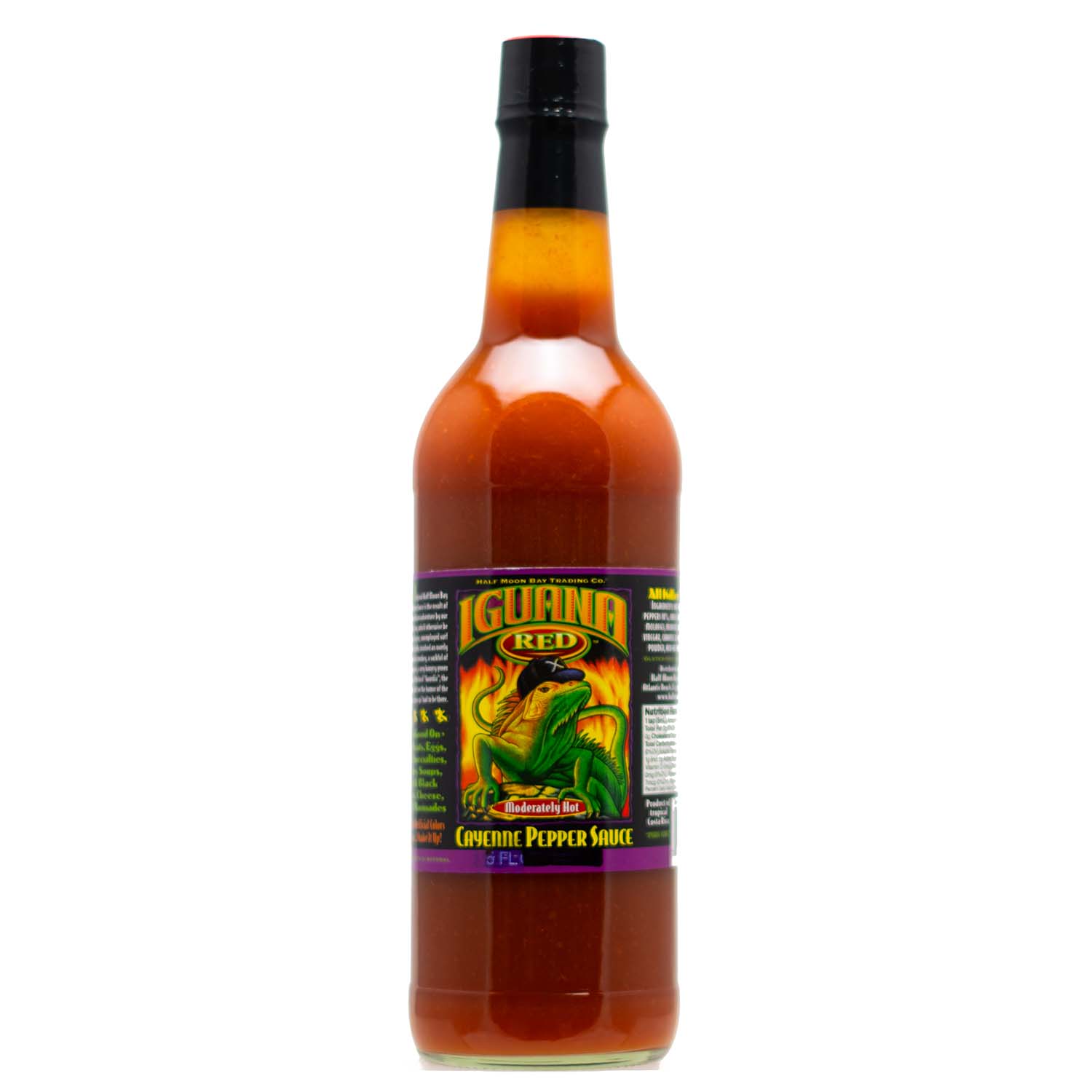 Moderately hot, this original Half Moon Bay Iguana Red Pepper Sauce is the result of years of wordly misadventure by our guerrilla research and development team, who would otherwise be just a couple of aging, unemployed surf bums. One such folly involved an overly curious howler monkey, a sackful of cayenne peppers, avery hungry green iguana and the local Guardia, the latter whom didn't see the humor of the situation... guess you had to be there. Iguana Red Cayenne Hot Sauce is a great tasting, all around table sauce.